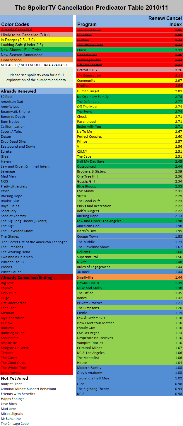 Fall season 2011/2011: Confiram a mais nova tabela atualizada com chances de renovação e cancelamento das séries